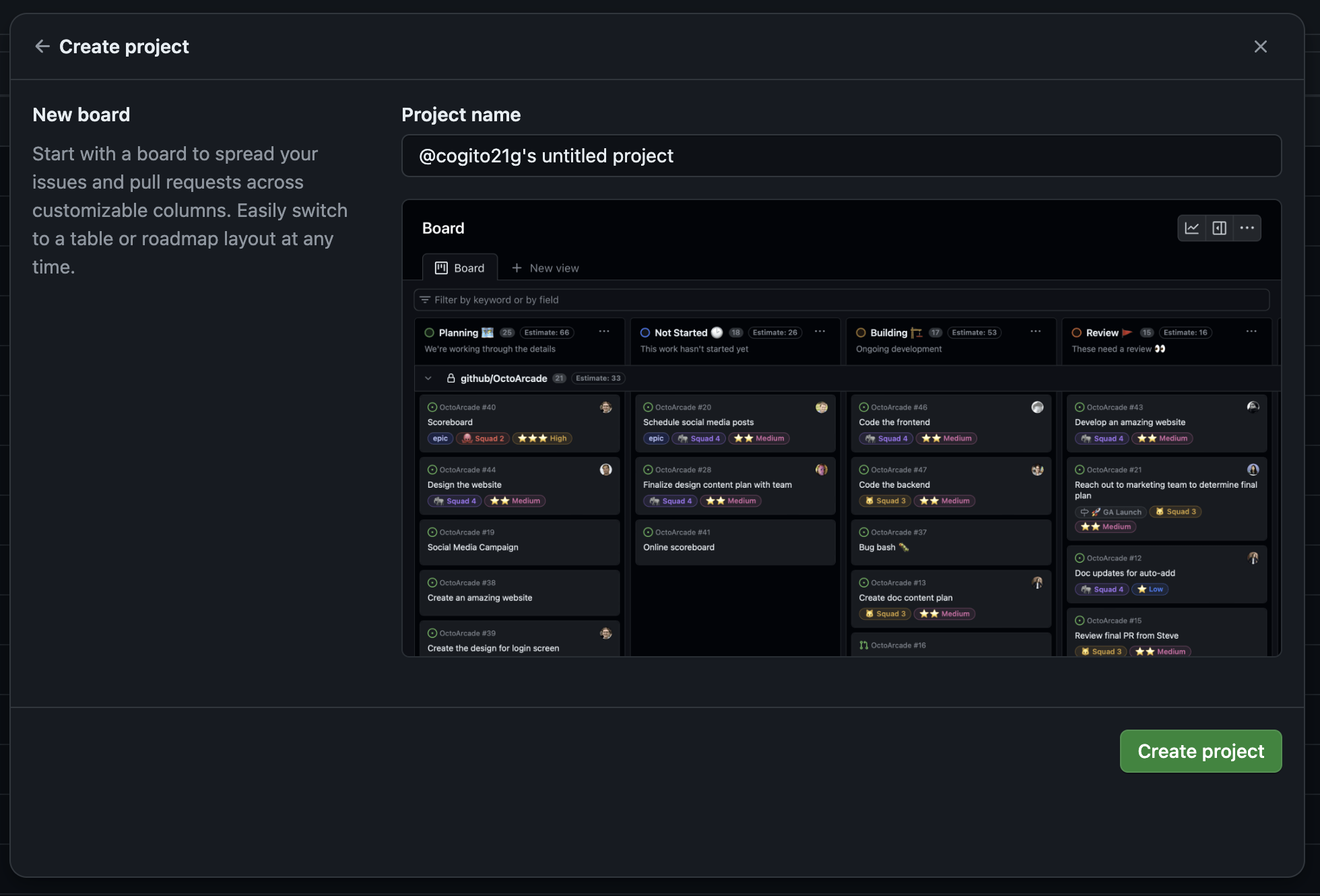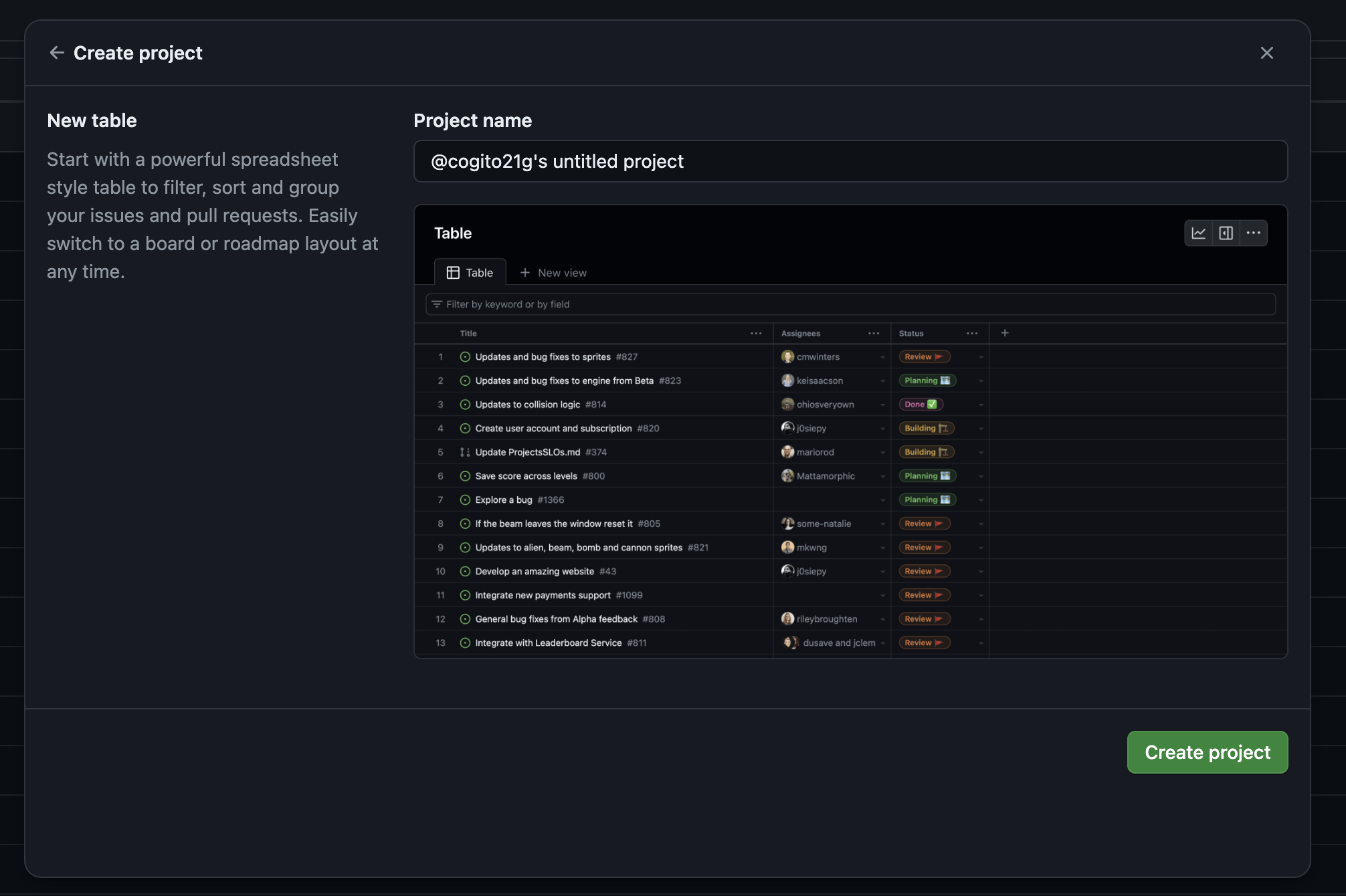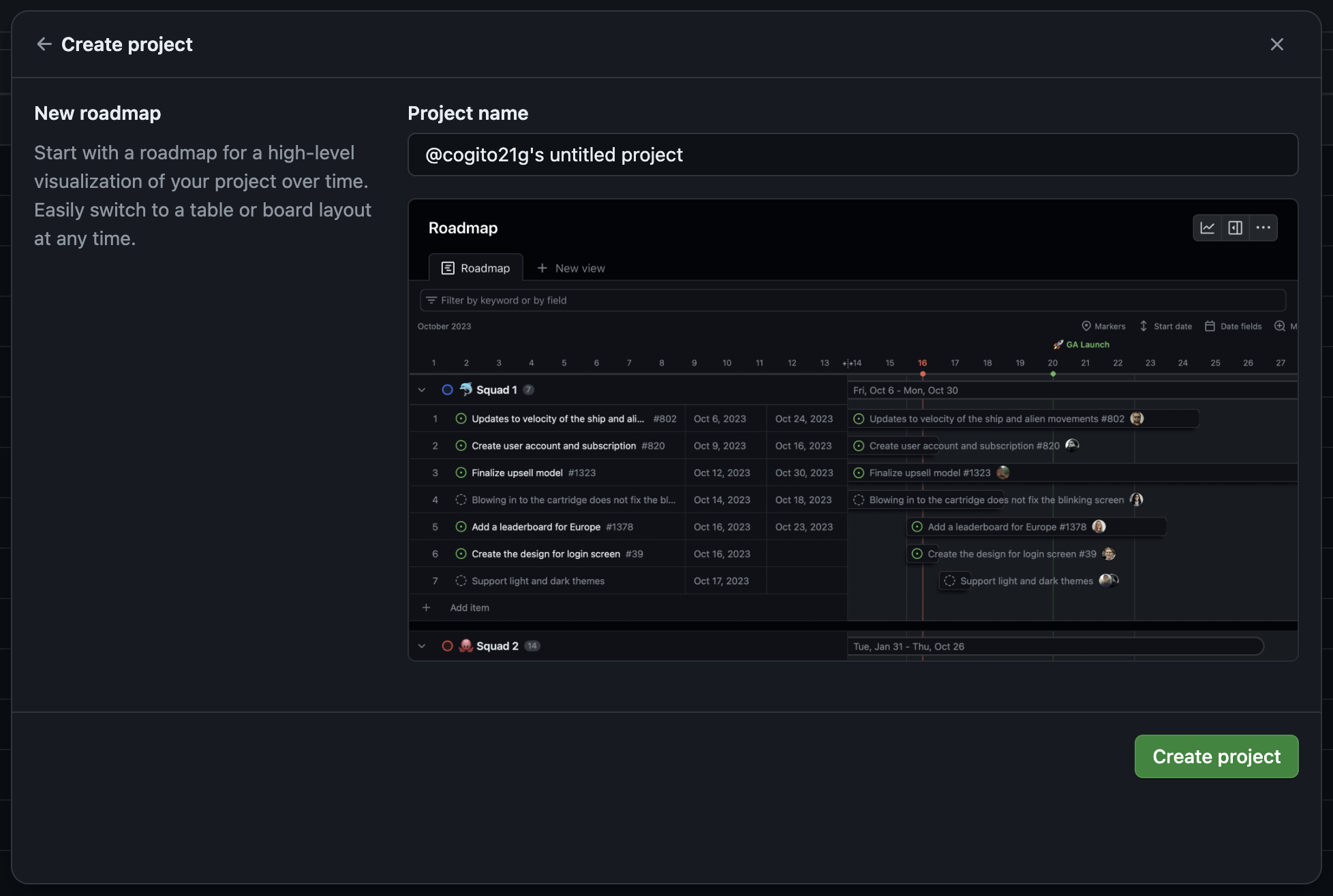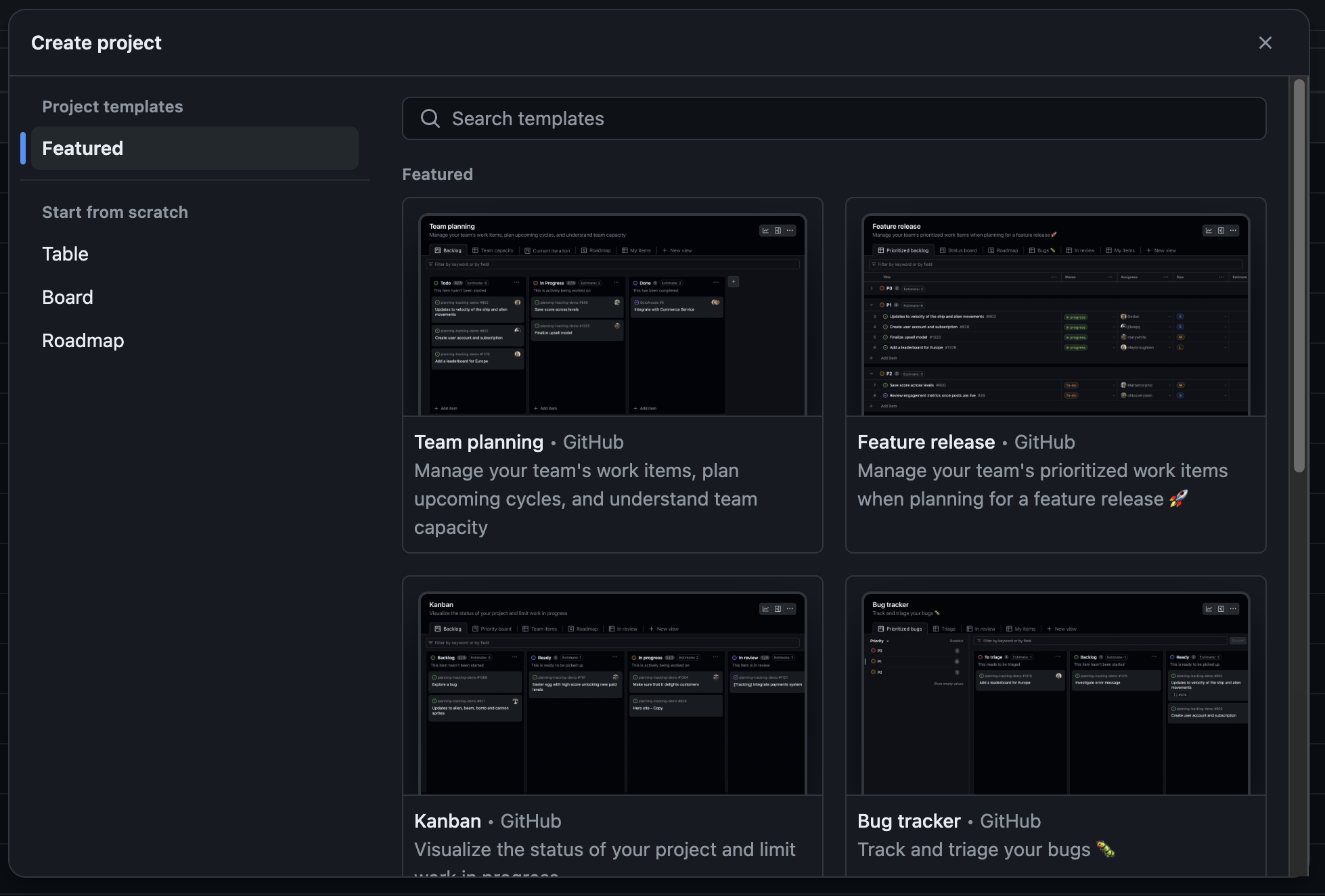 - Table/Board/Roadmap 등과 같이 필요한 프로젝트에 맞는 템플릿 선택