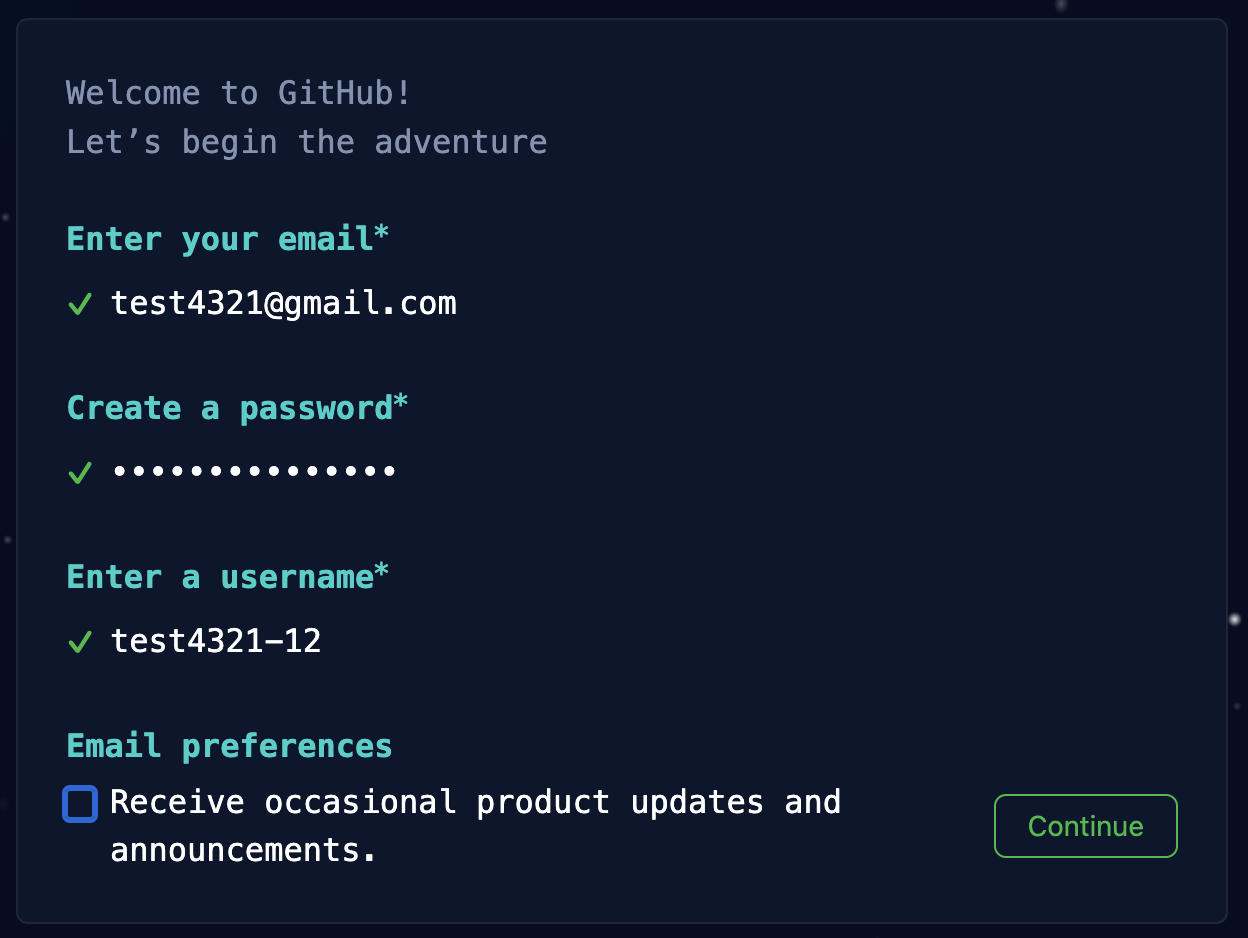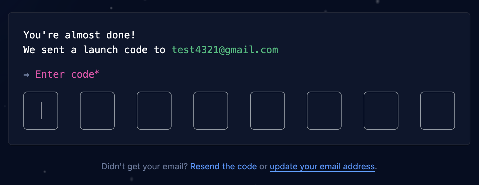 7) 이메일로 전송된 코드를 확인하고 입력하여 계정 생성