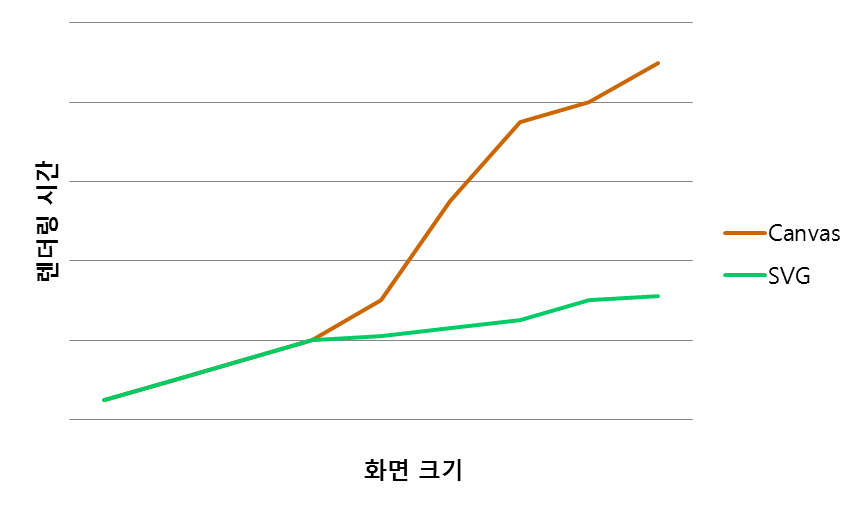 - 화면이 작거나, 픽셀 수가 많을 경우(>10k): canvas 추천